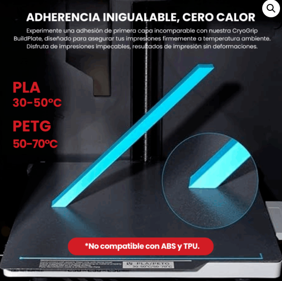 La base Panda Buildplate Double-CryoGrip Textured 257×257 mm está diseñada para ofrecer máxima adherencia sin necesidad de calentar la cama, ideal para impresoras Bambu Lab P1, X1, A1 y modelos compatibles con este formato. Cuenta con recubrimiento CryoGrip texturado en ambas caras, proporcionando una fijación fuerte y uniforme en la primera capa, incluso a temperatura ambiente. Esta base es ideal para imprimir PLA, PETG, TPU, ABS, PA y otros materiales técnicos, permitiendo resultados limpios y sin deformaciones.