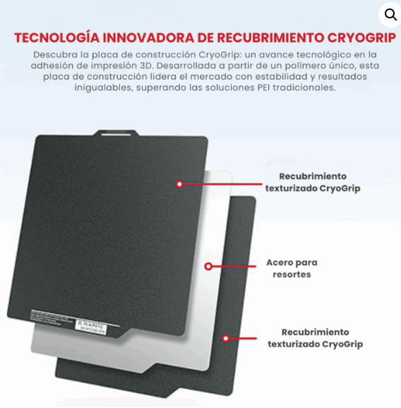 Fabricada en acero elástico con propiedades magnéticas, permite una instalación sencilla y segura. Su flexibilidad facilita la remoción de piezas una vez enfriadas, sin necesidad de herramientas. El recubrimiento es resistente, autorreparable y fácil de limpiar con agua o alcohol isopropílico, manteniendo sus propiedades por largo tiempo. Gracias a su doble cara texturada, ofrece mayor durabilidad y versatilidad, adaptándose a distintos tipos de impresión y reduciendo tiempos de preparación.