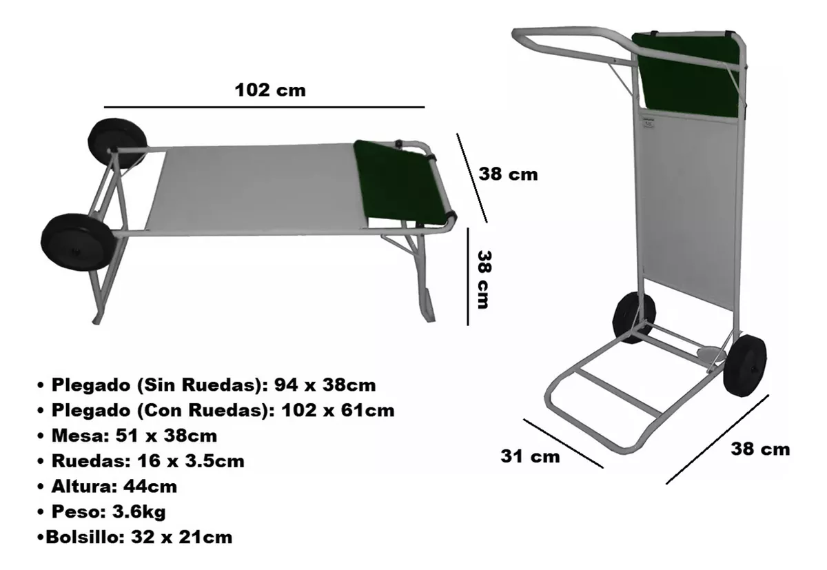 Carro mesa playero de acero plegable