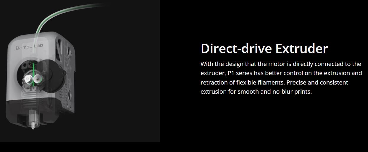 La serie P1 cuenta con una extrusora de accionamiento directo que permite un mayor control sobre la extrusión y retracción de filamentos flexibles. Gracias a su diseño, en el que el motor está conectado directamente a la extrusora, se obtiene una extrusión precisa y consistente, lo que se traduce en impresiones suaves y sin borrosidad. - PRIMERA CAPA PERFECTA